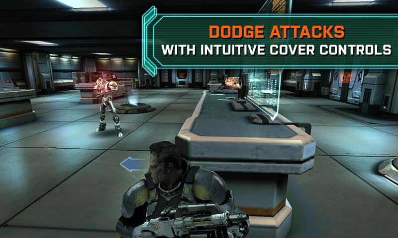 Usa unos controles táctiles intuitivos para una lucha trepidante. Salta y da volteretas con fluidez para cubrirte con solo deslizar un dedo. Libra épicos combates finales contra los mecas de Cerberus y víctimas mutadas de los experimentos. Para probarlo, basta con que desactives la función ""Pulsar para apuntar"", en la sección Opciones.